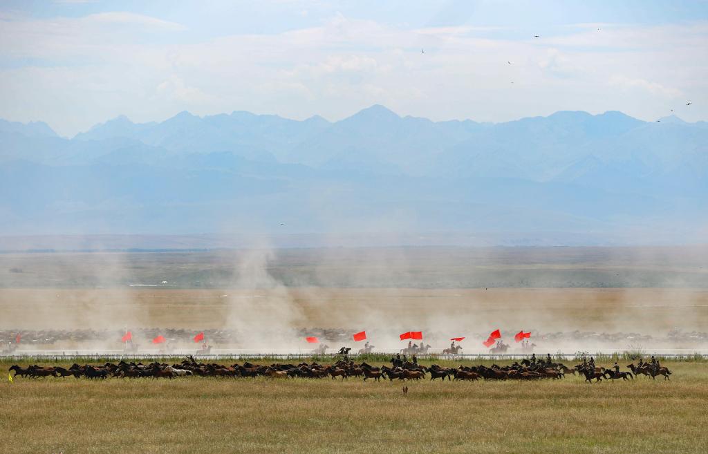 昭苏县素有“中国天马之乡”美誉,全县马匹存栏量达12.2万匹。依托独特资源禀赋,当地仅去年就举办马产业品牌赛事149场次。今年7月,2025新疆伊犁天马文化旅游节又在当地开幕。赛场上,骑手们身骑骏马,尘土飞扬。观众席上欢呼声此起彼伏,将节日氛围推向高潮。