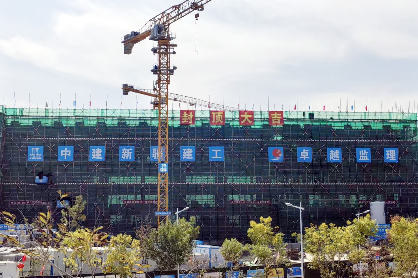 该项目是中建新疆建工重点推进工程,坐落于乌鲁木齐市水磨沟区新疆大学博达校区内,总建筑面积达2.98万平方米。自2025年3月正式开工以来,项目部科学统筹施工计划、严控工程质量与安全,仅用6个月便高效完成主体结构封顶任务,充分展现了“中建速度”与建造实力。