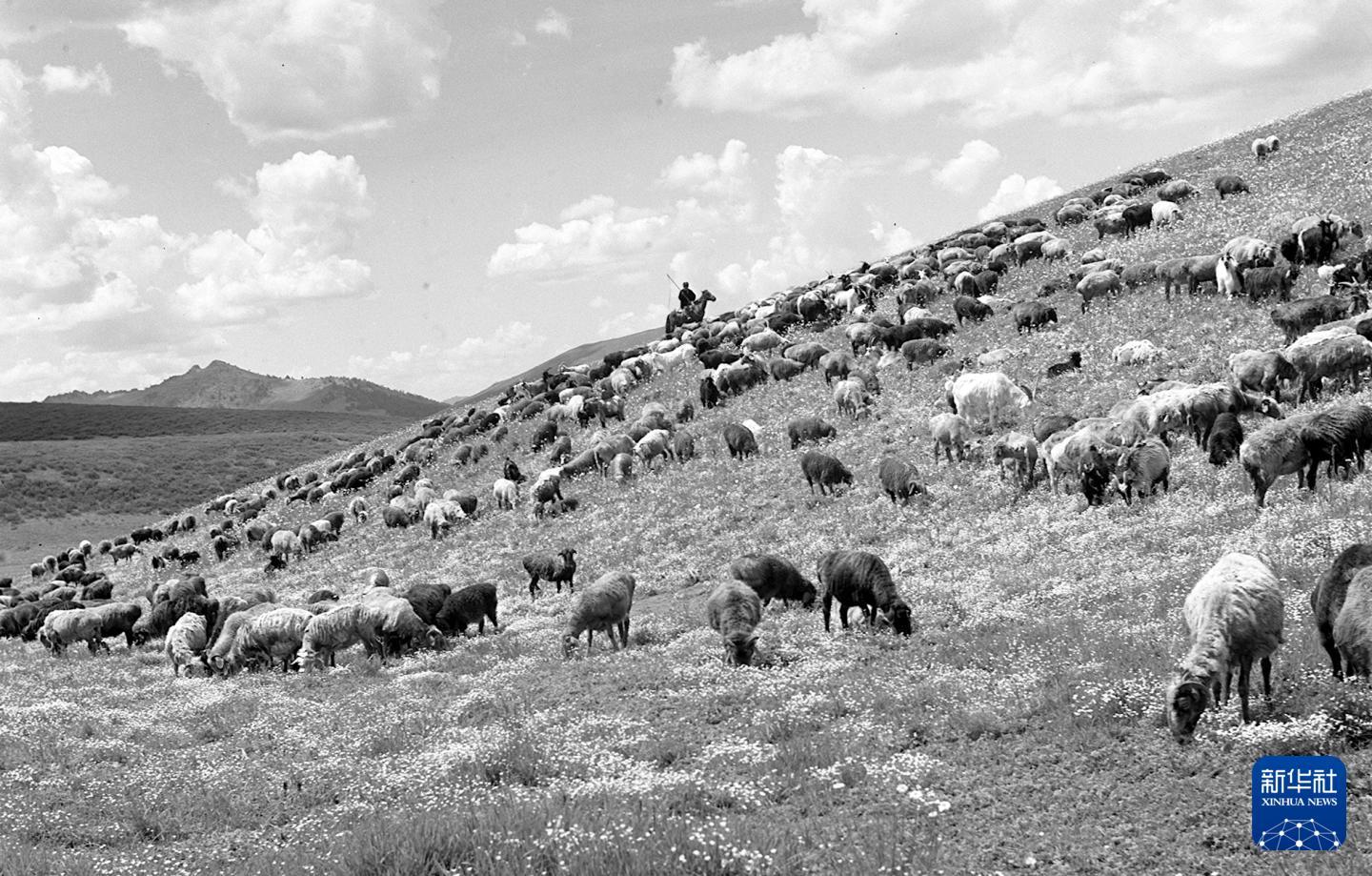 第二天清晨,被羊叫声唤醒,我跑出帐篷,只看到漫山遍野的羊群,像棉田里一朵朵绽放的棉花。我这个不久前才从北京来的人哪里见过这样的场面,赶紧取出相机,到处找角度拍照。后来其中一张名为《天山放牧》的照片被推荐参加了“荷赛”(世界新闻摄影比赛),成为我国较早入围“荷赛”展览的摄影作品之一。