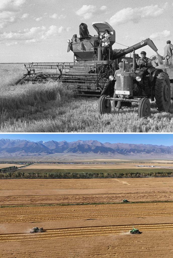 2024年,新疆粮食总产466亿斤,粮食单产跃居全国第一。而在新中国成立之初,新疆粮食总产量仅为110万吨,人均口粮不足200公斤。