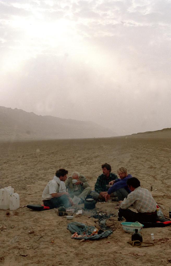 1988年,中法专家组织了一次沙漠绿洲变迁的考察活动。得知消息后我心里痒痒的,想参加,于是我厚着脸皮跟上团队,每天为考察队员做饭,为司机推车,最后考察队可能觉得我厨艺不错,答应我参与整个考察活动。在随队采访丝绸之路时,我又厚着脸皮要求骑前面的骆驼,老专家骑第一匹,我就骑第二匹,那样在漫长的行程中,我就可以转过身去拍摄考古队行进的场景,而不是只拍骆驼的屁股。