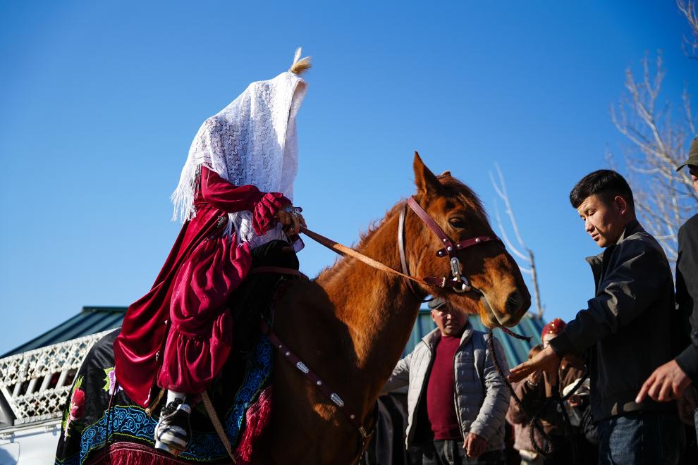 孔吐斯和布开汗选择在今年的金秋时节举行婚礼。婚礼从新娘孔吐斯位于冬牧场上的家开始,幸福的仪式一直持续到新郎布开汗家所在的喀拉达拉镇加尔阔拉村。