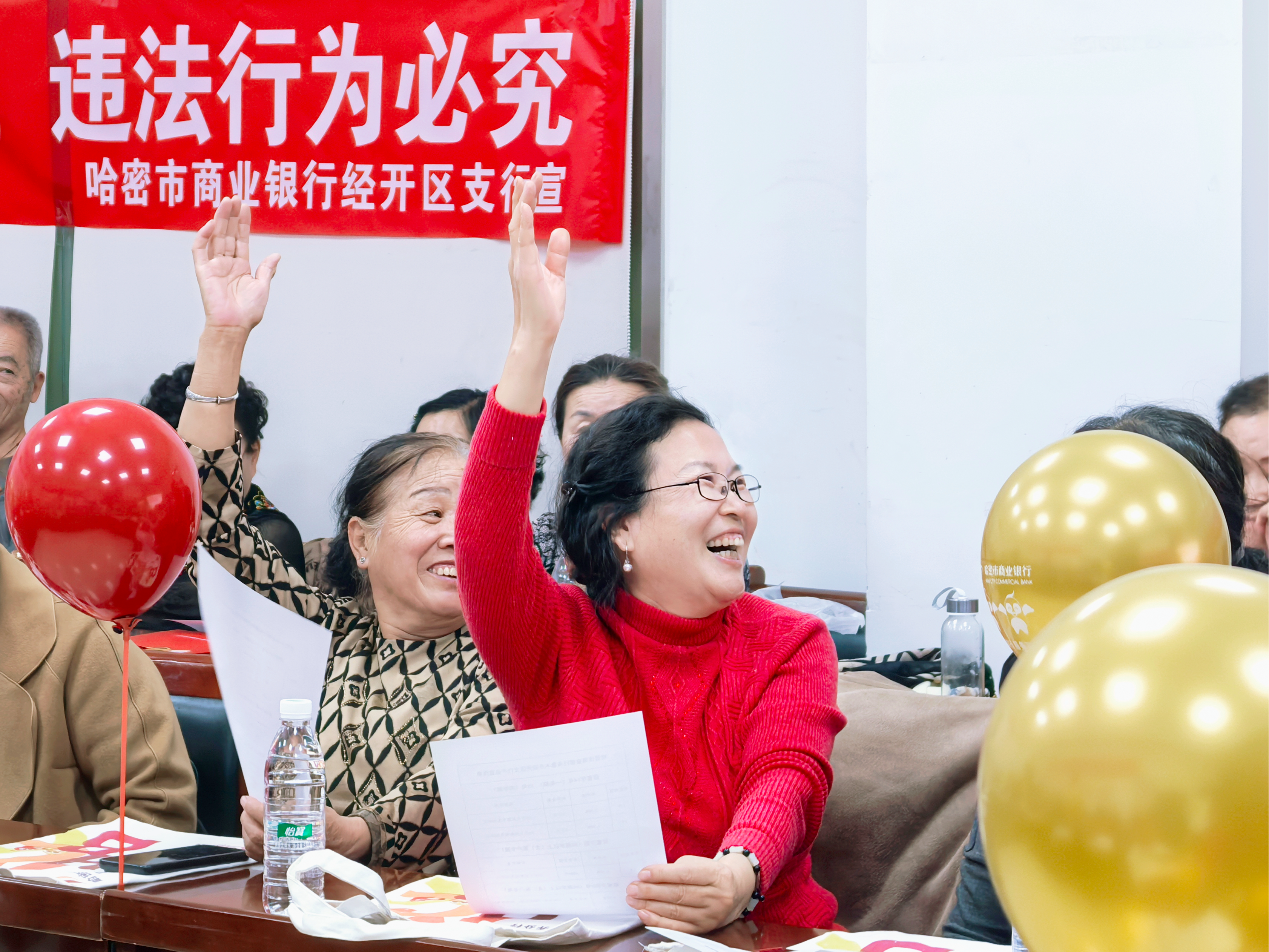 为让知识普及更有趣味,活动设置7-8轮防诈骗有奖抢答环节,答对的老人可获得“抓鸡蛋”机会,现场氛围迅速升温,老人们积极举手、踊跃作答。紧接着,新业集团青年志愿队为每位老人送上保暖手套,一份份贴心礼品传递着温暖关怀,志愿者还与老人们亲切合影,定格美好瞬间。