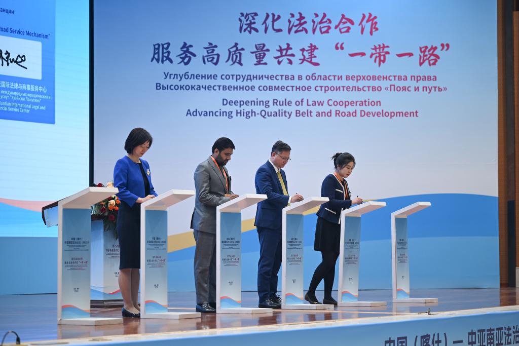 中国法学会常务副会长王洪祥在致辞中指出,法治是共建“一带一路”的重要保障。他倡议,中国与中亚、南亚各国以法治共识为基石、法治规则为引擎、法治合作为桥梁,持续为推动“一带一路”高质量发展注入强劲法治动力。