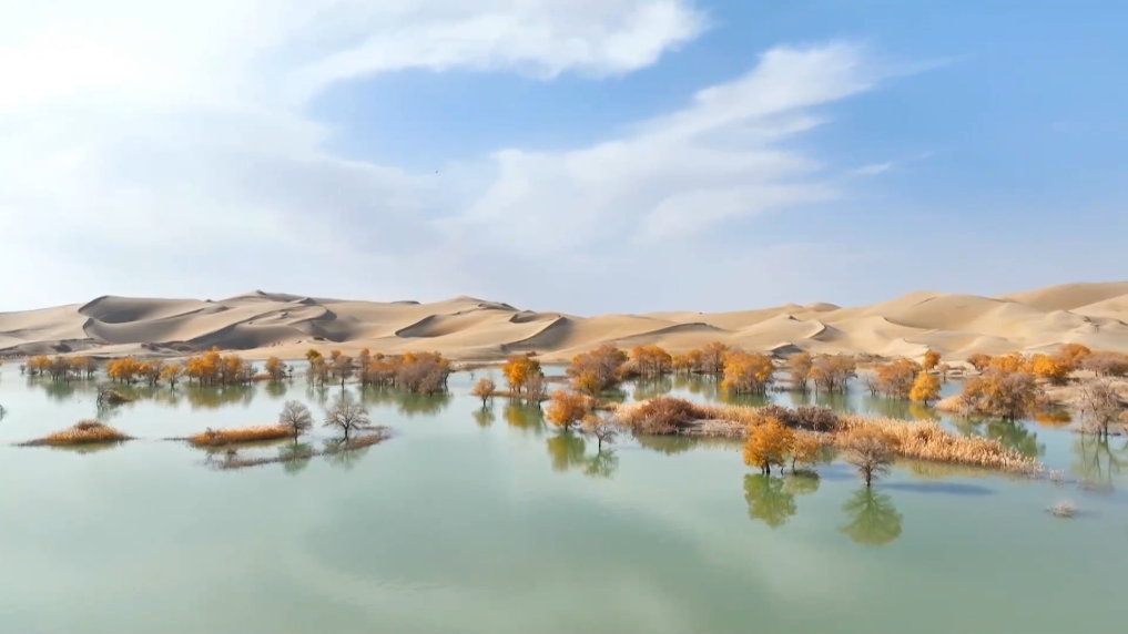 葫芦岛位于塔克拉玛干沙漠东北缘,因塔里木河水蜿蜒入沙形成葫芦形湖泊得名。