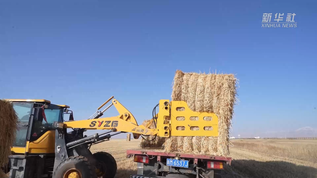 面对新一轮强冷空气即将来临,新疆巴音郭楞蒙古自治州各地抢收饲草料为牲畜过冬备足“口粮”。