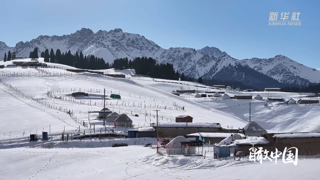 连绵的山峦披上了洁白的盛装,峰峦叠嶂间,雪色如纱漫卷;层叠的田地静卧于皑皑白雪之下,似千里素绢铺展,尽显大地的辽远与柔美。无垠雪野中,马儿悠然觅食,与远处苍劲的松林相映成趣。每一处风景都藏着江布拉克独有的浪漫,共同勾勒出一幅灵动而静谧的冬日画卷。