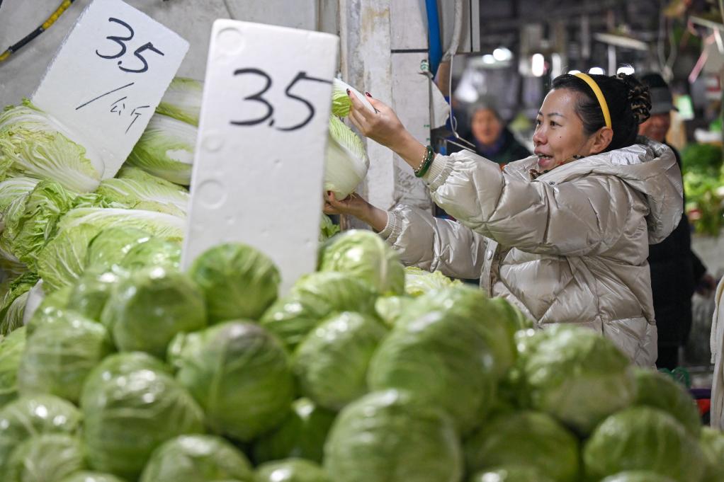 在新疆乌鲁木齐市盛源综合农贸市场,市民在选购蔬菜(1月20日摄)。