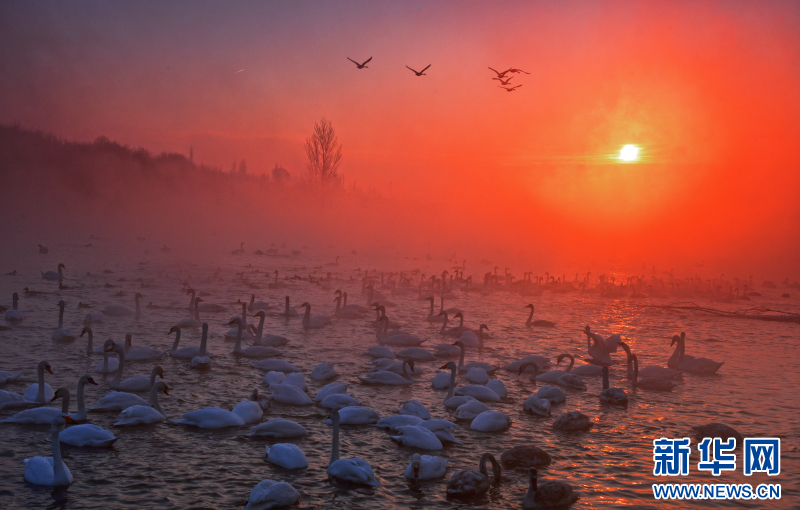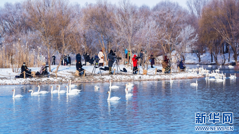 1993年11月,两只疣鼻天鹅带着3个孩子突然飞到夏合勒克村,落在了村民韩新林门口的鱼塘中。韩新林连续几天给天鹅投放食物,帮它们熬过寒冬。没想到,这个善意的举动,引来了越来越多天鹅年年到此过冬。从最初的一家五口,增加到如今超过1000只的庞大家庭。每年冬季,它们从远方如期而至,与这里的雾凇、晨雾和霞光,共同绘就一幅生命与自然相守的温暖画卷。