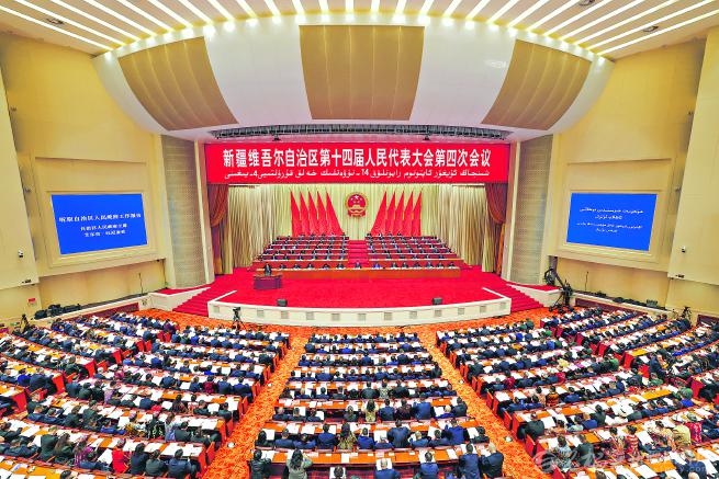 1月27日,新疆维吾尔自治区第十四届人民代表大会第四次会议在新疆人民会堂开幕。崔志坚 摄