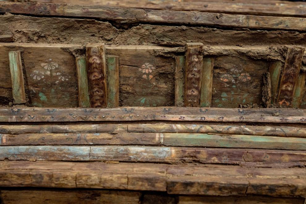 这是墓葬M20出土的彩色木棺(资料照片)。