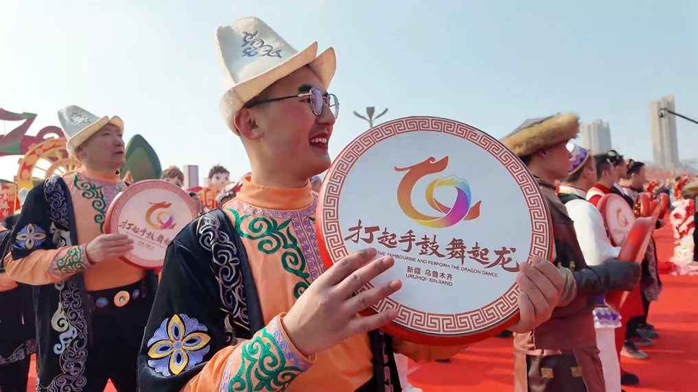 打起手鼓舞起龙!新疆乌鲁木齐社火巡游燃动新春