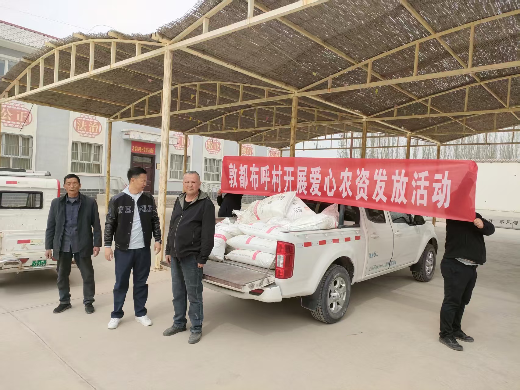 近日,博湖县委政法委、县市场监督管理局、县公安局、县技工学校驻查干诺尔乡敦都布呼村工作队为该村村民免费发放农资,助力村民春耕生产。