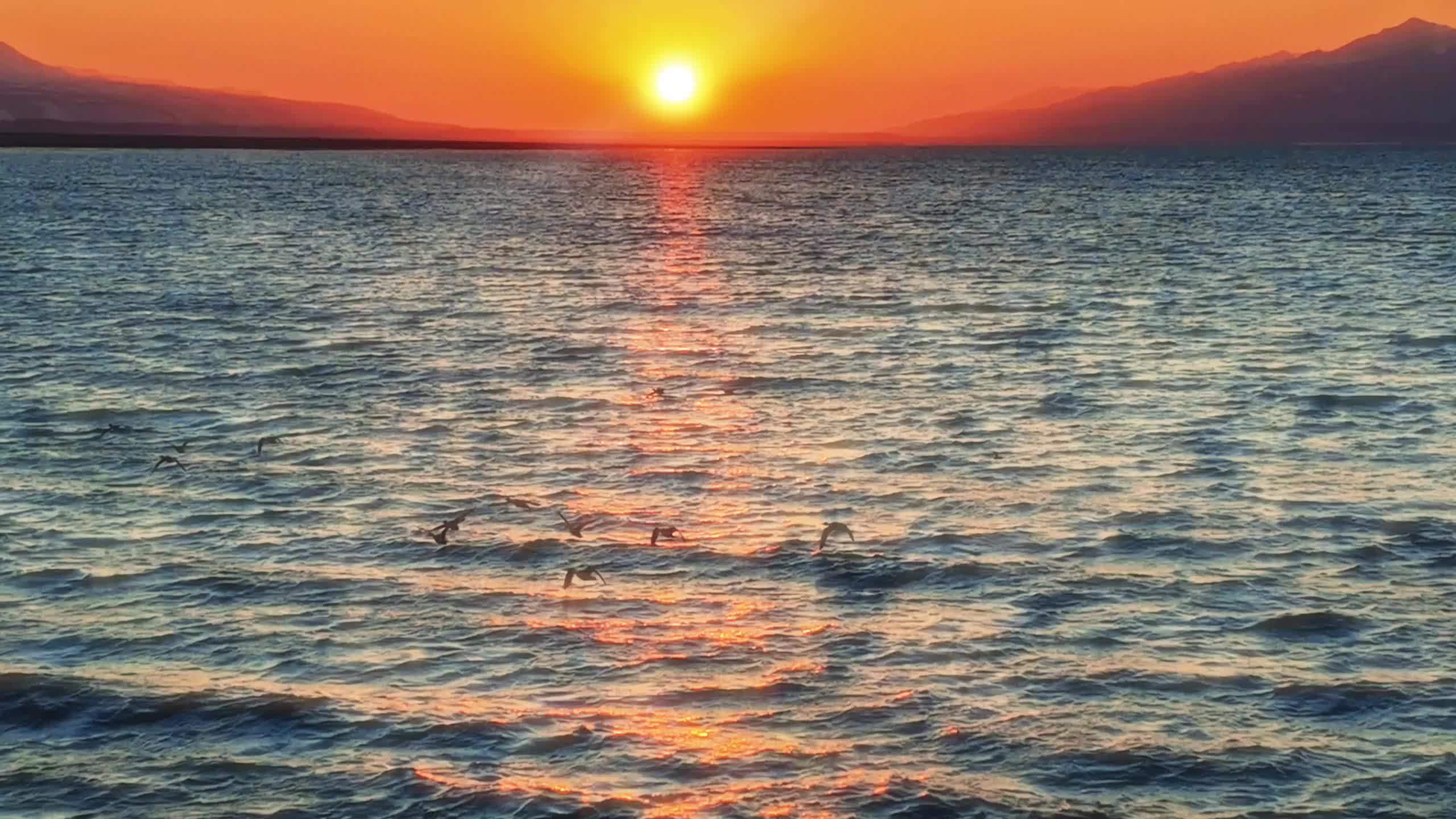 新疆库车:冬日晚霞绘就天山绝美画卷